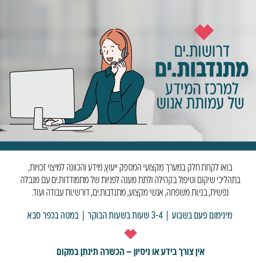 הצטרפו לצוות המתנדבים שלנו והיו משמעותיים בדרך המתאימה לכם!