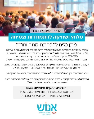 helping our teams to cope with the latest emergency routine and be there for our clients. We have a manager of resiliency and emergency that is supported by local “resiliency referents” in different centers. An organizational survey we conducted showed that employees feel meaningful in this time, in part, due to new working structures we adopted to this crisis (such as opening and closing day calls; organizational guidelines). We are continuing to address the issue to all staff through a series of ZOOM lectures “From pressure and burnout to resiliency and growth”. All materials are uploaded to the Knowledge management system (Enosh DNA) and are accessible to all employees.